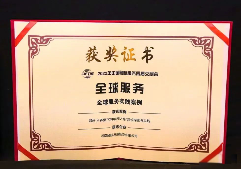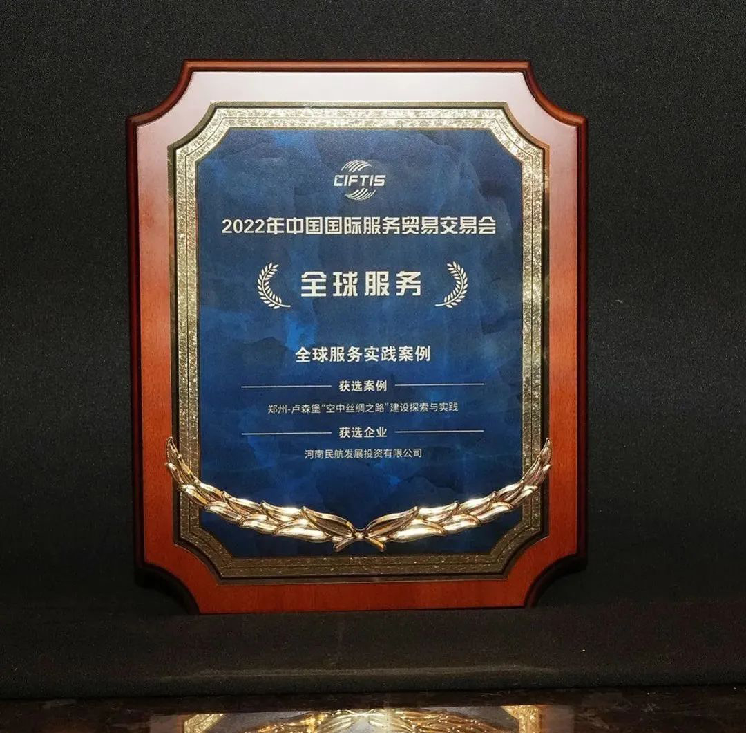 On September 3, 2022, the service demonstration case of China InternationalFair for Trade inServices was released in Beijing. The "Zhengzhou-Luxembourg Air Silk Road, Exploration and Practice" project applied for byHNCAwas awarded "Global Service Practice Case" and was highlighted at the launch ceremony.