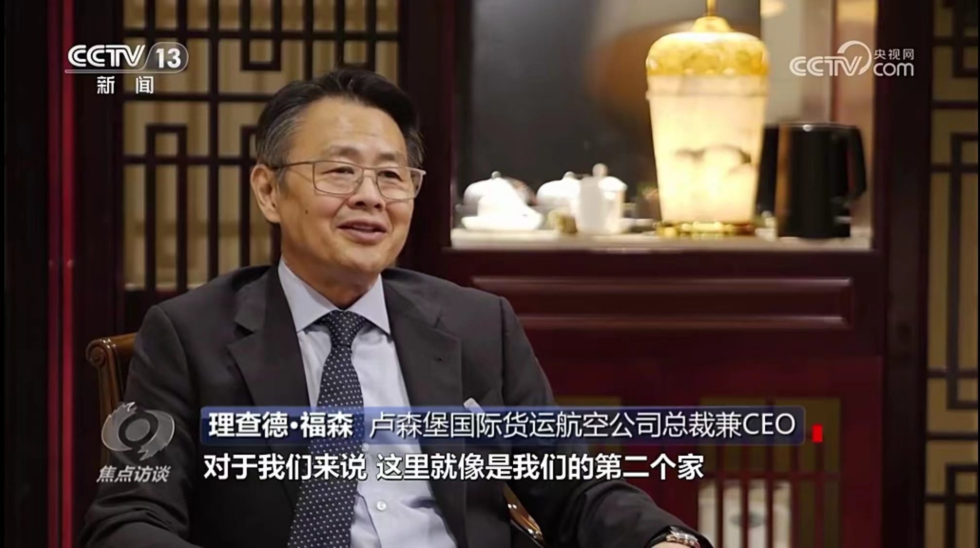 10月11日,央視《焦點(diǎn)訪談》播發(fā)系列報道“絲路同行”第一集——雙向奔赴的繁榮之路。報道中說,“一帶一路”倡議的提出,讓河南明確了突破區(qū)位限制、向藍(lán)天要效益的開放思路。通過采訪河南航投集團(tuán)黨委書記、董事長張明超和盧森堡貨航董事會主席湯姆·維斯格伯、總裁兼CEO理查德·福森,報道回顧了鄭盧“空中絲綢之路”十年探索實踐和豫盧之間的友好情誼。節(jié)目評論道:“(河南航投與盧森堡貨航)之間早已超越了生意伙伴這一簡單的關(guān)系,多年的合作讓鄭州與盧森堡兩個航空樞紐之間的互聯(lián)互通真正實現(xiàn)了彼此雙方互利共贏和美美與共。這一切都在詮釋著‘一帶一路’倡議的核心要義。”