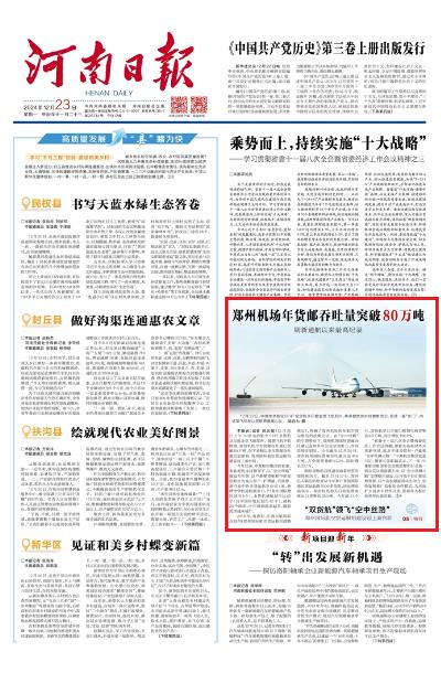 2018年,省政府、中國民航局聯(lián)合發(fā)布《鄭州國際航空貨運(yùn)樞紐戰(zhàn)略規(guī)劃》,明確了鄭州機(jī)場國際航空貨運(yùn)樞紐的戰(zhàn)略定位。在“空中絲路”的引領(lǐng)帶動下,鄭州機(jī)場國際貨郵吞吐量已連續(xù)多年位居全國第五,外向型特征明顯。今年截至12月20日,鄭州機(jī)場國際貨郵吞吐量完成45.6萬噸,占全部貨量的57.2%,同比增長22.1%。