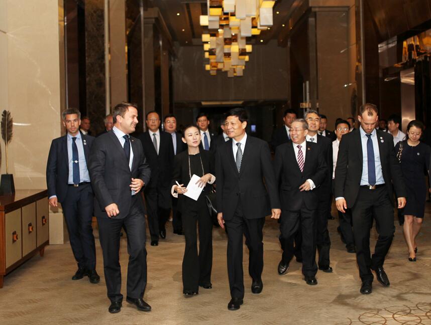 6月13日,省委書(shū)記、省人大常委會(huì)主任謝伏瞻在鄭州會(huì)見(jiàn)了來(lái)豫訪問(wèn)的盧森堡首相格扎維埃?貝泰爾一行,并和省長(zhǎng)陳潤(rùn)兒共同見(jiàn)證有關(guān)合作協(xié)議的簽署。河南航投黨委書(shū)記、董事長(zhǎng)張明超一同參加會(huì)見(jiàn),并代表河南航投與盧森堡駐華大使石泰嵋簽署《關(guān)于在河南開(kāi)展簽證便利業(yè)務(wù)諒解備忘錄》.