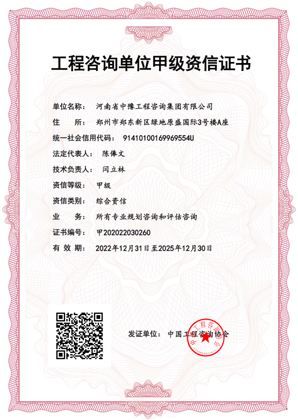 工程咨詢資信等級(jí)是衡量工程咨詢企業(yè)綜合實(shí)力的重要標(biāo)志,也是工程咨詢企業(yè)發(fā)展的重要基石。甲級(jí)綜合資信可以作為所有專業(yè)規(guī)劃咨詢和評(píng)估咨詢業(yè)務(wù)能力的參考。目前,中豫咨詢集團(tuán)已獲得工程咨詢單位甲級(jí)綜合資信和7個(gè)甲級(jí)專業(yè)資信,企業(yè)綜合實(shí)力邁上新臺(tái)階。