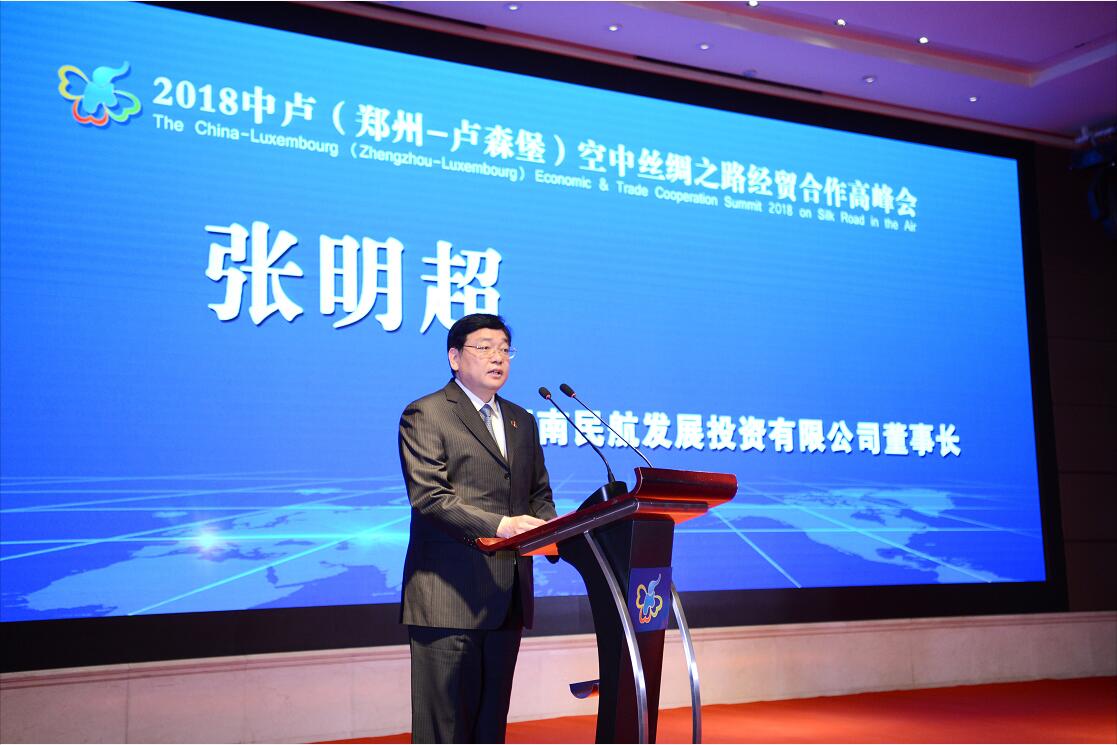 4月17日,2018中盧(鄭州—盧森堡)“空中絲綢之路”經(jīng)貿(mào)合作高峰會(huì)在鄭州舉行,來自河南和盧森堡兩地的政府官員、企業(yè)代表、專家學(xué)者碰撞思想火花,凝聚智慧力量。河南航投黨委書記、董事長(zhǎng)張明超出席峰會(huì)并發(fā)言。