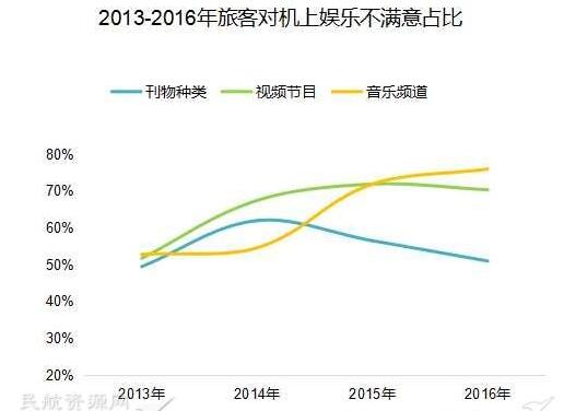 以上圖為例,音頻、視頻、旅客的滿意度一直在下降,不滿意度一直在上升?!熬退銠C(jī)上娛樂項(xiàng)目更新得再快,做得再好,不可能滿足每一個(gè)旅客的個(gè)性化需求。但是只要打通了一個(gè)環(huán)節(jié),把互聯(lián)網(wǎng)接上了,聊微信也好,聽QQ音樂也好,還是聽其他的音樂也好,那都是旅客自己的事情,旅客滿意度會(huì)得到最大程度的提升?!?